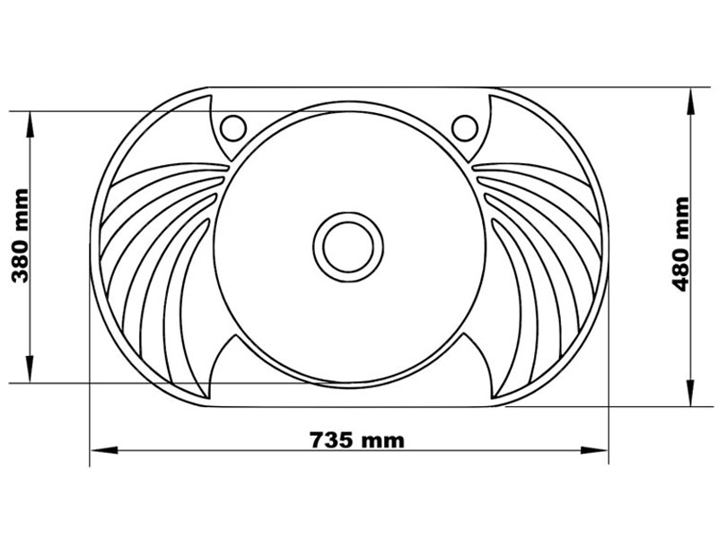 | Wymiary | 73,5 cm x 48 cm, średnica komory: 38 cm, głębokość: 16 cm |